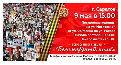 9 мая 2019 в Саратове пройдет масштабная акция Бессмертный полк.
