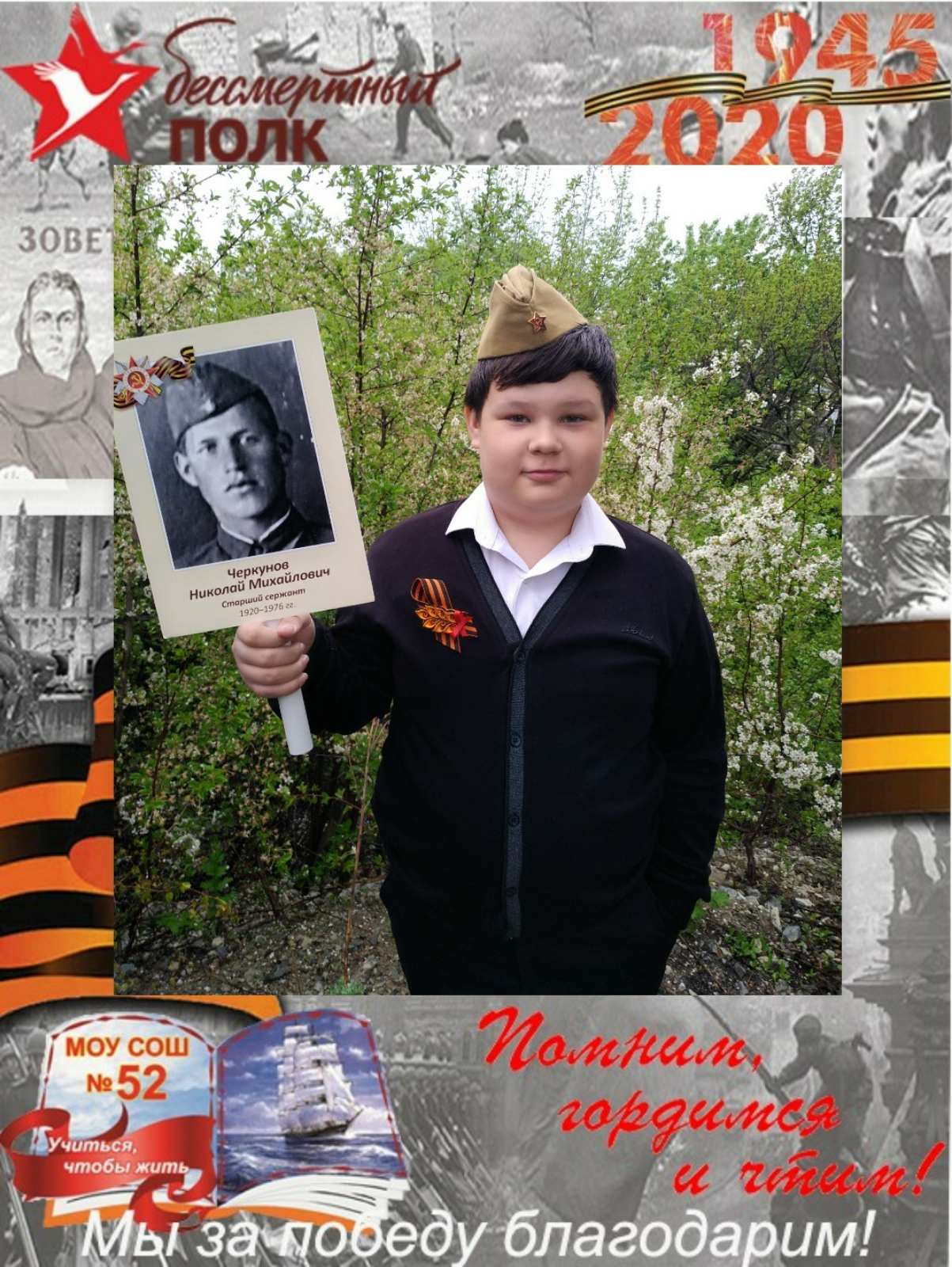 Понкрашов Е. 6 Б класс. Прадед Черкунов Николай Михайлович. Старший сержант.