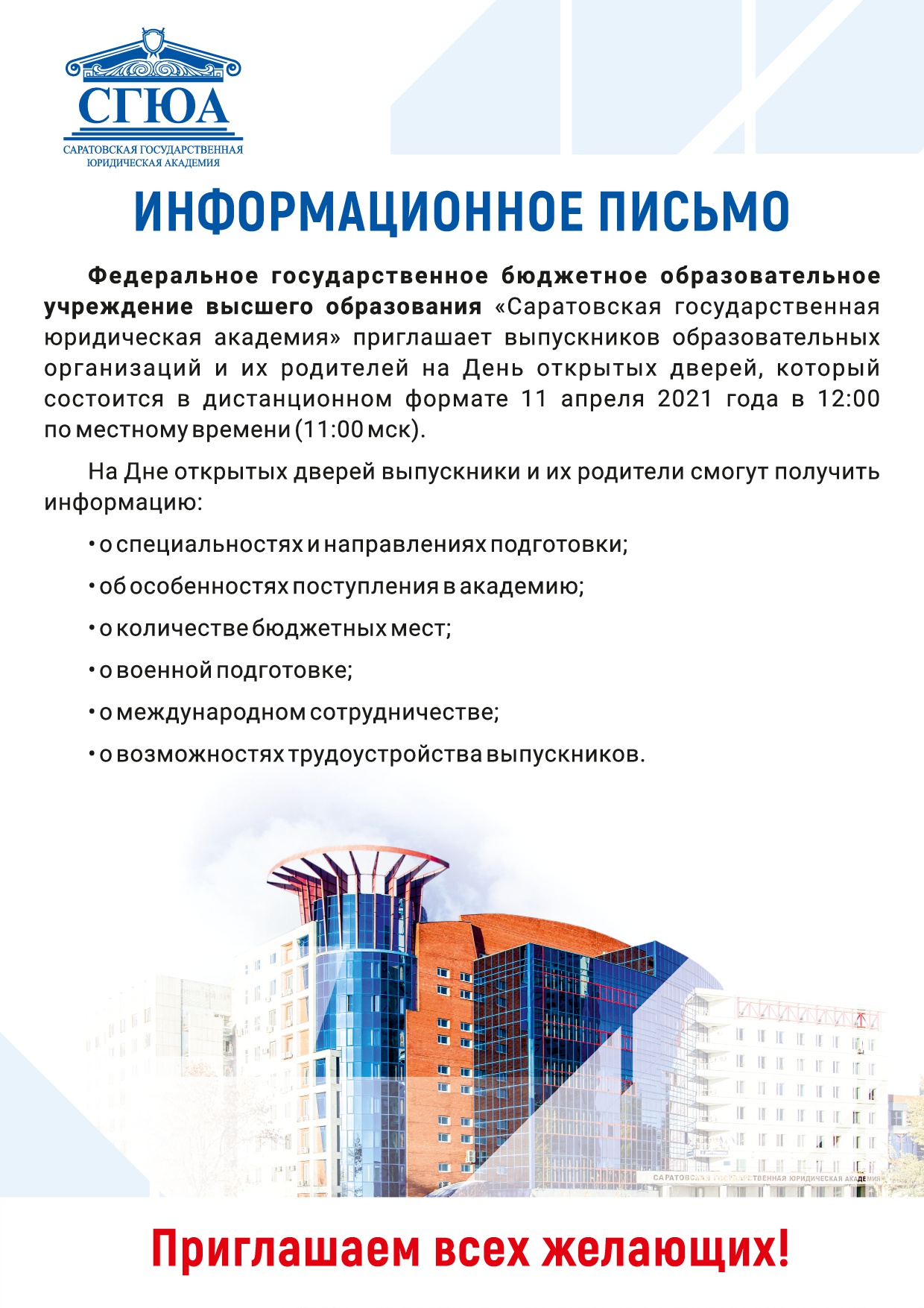 Поволжский институт (филиал) ФГБОУ ВО «Всероссийский государственный университет юстиции (РПА Минюста России)» в г. Саратове приглашает абитуриентов получить юридическое образование по направлениям и специальностям подготовки по очной, очно-заочной и заочной формам обучения, в том числе на бюджетной основе (130 бюджетных мест) (читать далее) -